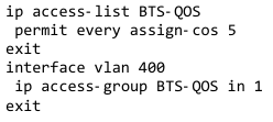 configuração a seguir cria uma ACL que marca com CoS 5 e aplica‑a à SVI da