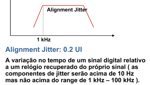 - Alignment jitter (0,2 UI): variação no tempo de um sinal digital em relação a um relógio recuperado do próprio sinal, com componentes acima de 10 Hz e abaixo da faixa de 1 kHz a 100 kHz.