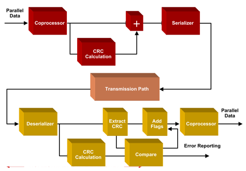 O valor resultante é inserido após a sequência EAV como palavras YCR0/YCR1 ou CCR0/CCR1. No receptor, o CRC recebido é comparado com o CRC recalculado para reportar eventuais erros.